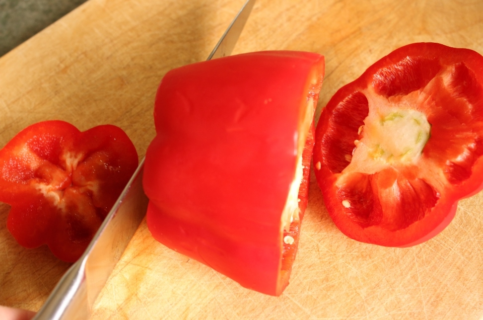 Cooking 101: Remove the Seeds from a Bell Pepper without a Mess Previous Next Published November 4, 2013 at 973 × 644 in Cooking 101: Remove Seeds from a Bell Pepper without a Mess. Step 2: Cut a thin slice off the bottom of the pepper.