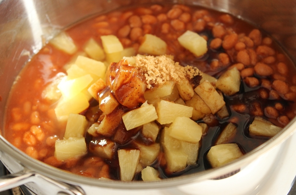 You’ll also need pineapple. I had leftover canned pineapple without the juice so if you’re opening a can of pineapple, to make these beans, you’ll want to strain them. Or not. Just can’t guarantee how they’ll turn out with the extra liquid.