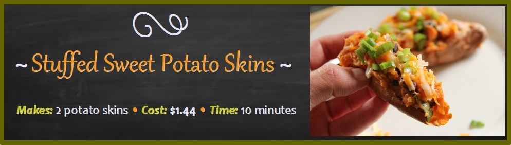 Stuffed Sweet Potato Skin Banner Previous Next Published October 21, 2014 at 994 × 282 in Stuffed Sweet Potato Skins: Microwave Monday Sweet potato skins stuffed with a nutritional all-star filling.