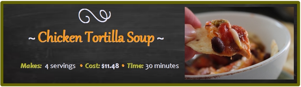 To keep slurping soup interesting, this excellent Chicken Tortilla Soup recipe – that was posted on the University of New Hampshire’s Healthy Services page (for some reason it has now been removed) will do the trick.