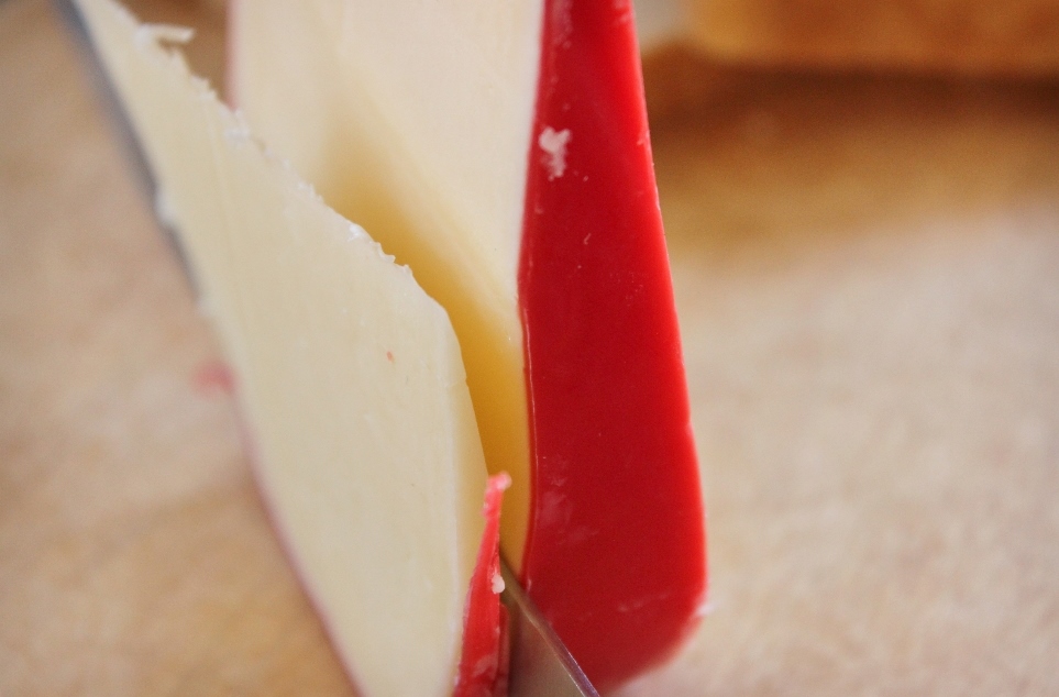 Just look at that Gouda – looks like a grown-up Babybel with its red wax rind. I couldn’t wait to remove it from the packaging to see how it tasted. This alone was more exciting than slicing the usual Cheddar or unwrapping processed cheese slices for a grilled cheese sandwich.