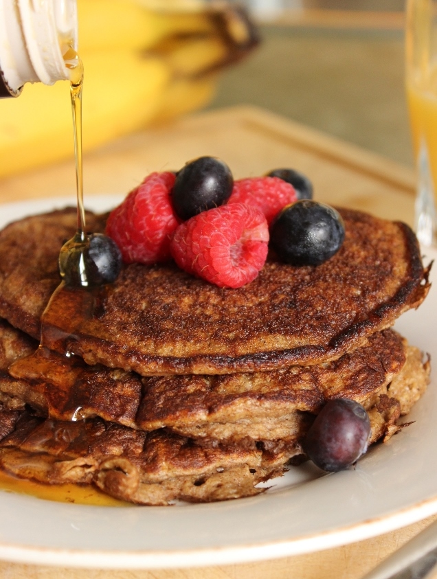 And, even though these Oatmeal Banana Pancakes are “good for you”, they still taste amazing topped with maple syrup and fresh berries!