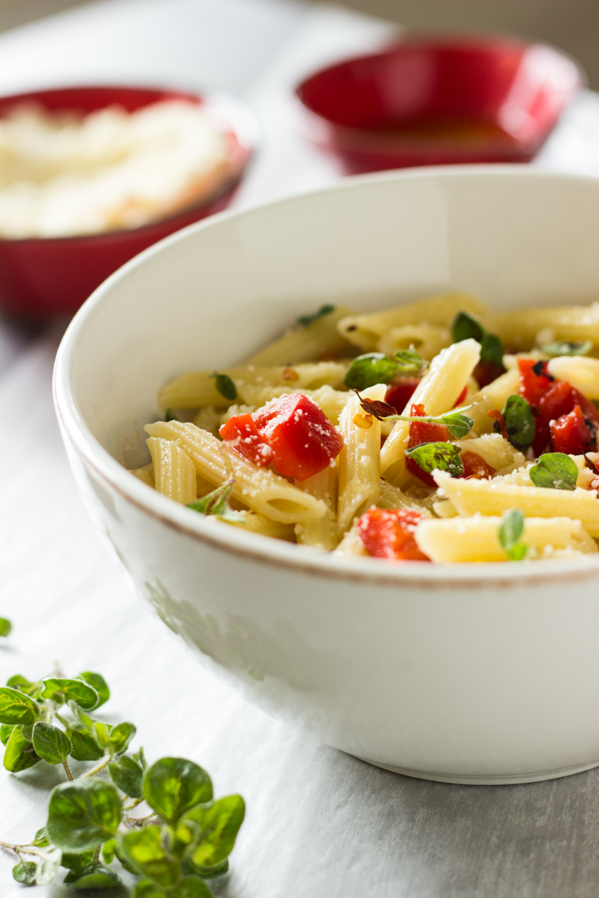 - 1 or 2 Tbsp. of a chopped fresh oregano (or something colorful that goes well with pasta)