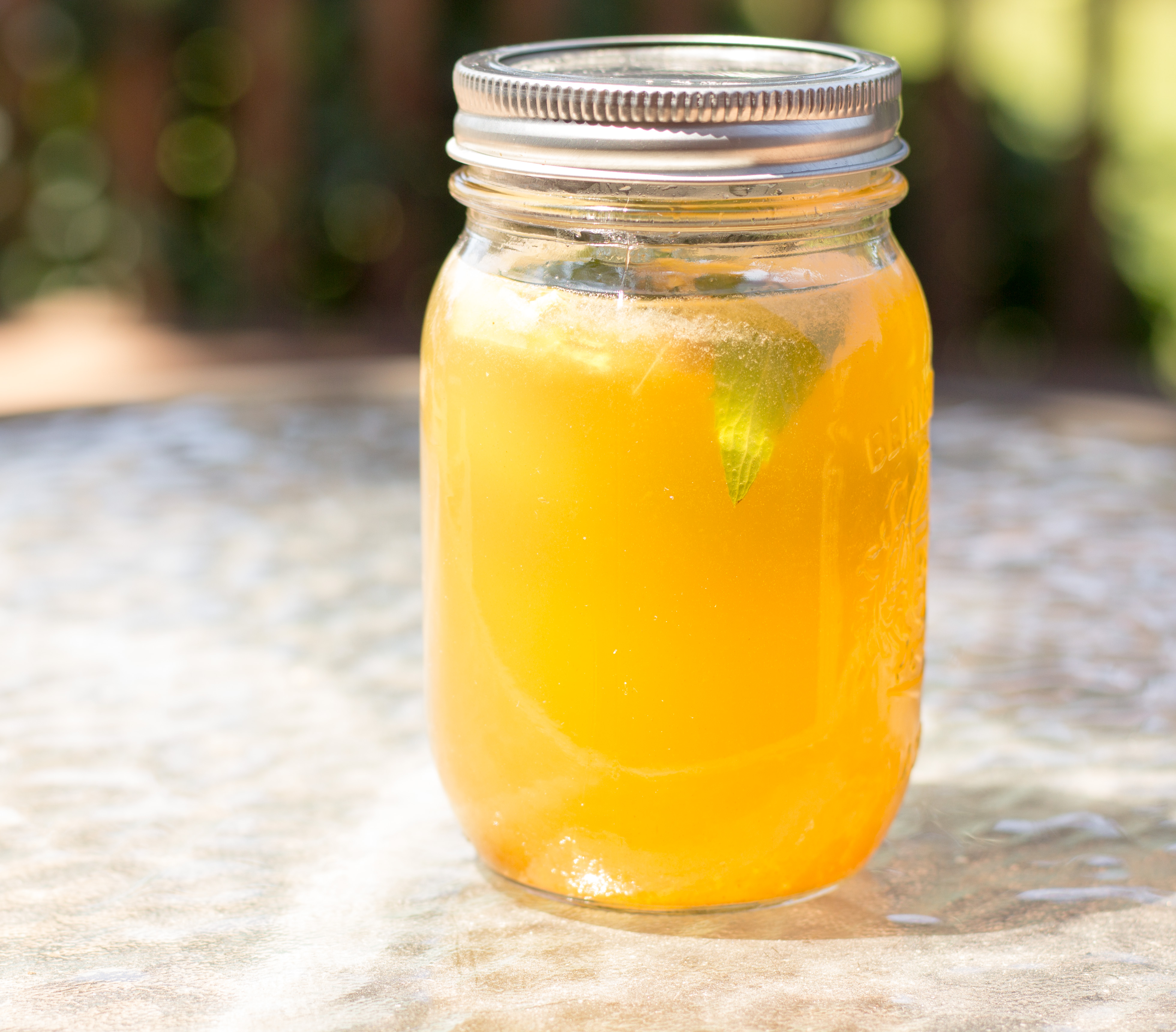 To make, place the first five ingredients in a 16 oz. mason jar. Fill jar with water and secure lid on top. Shake and set in sun to let steep for 5 minutes.