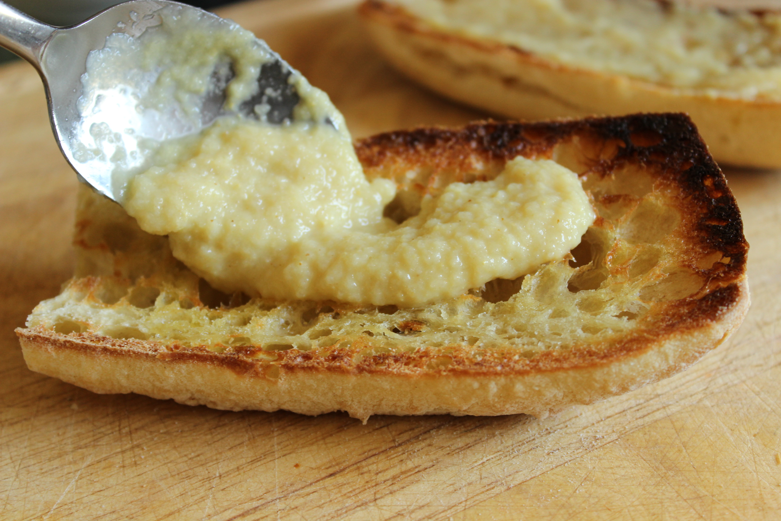 - Using a pastry brush, lightly brush each cut side of bread with olive oil. Place each half, cut side up, on a toaster oven baking sheet (or a sizzle platter if using the oven). Broil until bread begins to brown on top, about 2 to 3 minutes. Remove from toaster oven (or oven) and set aside.