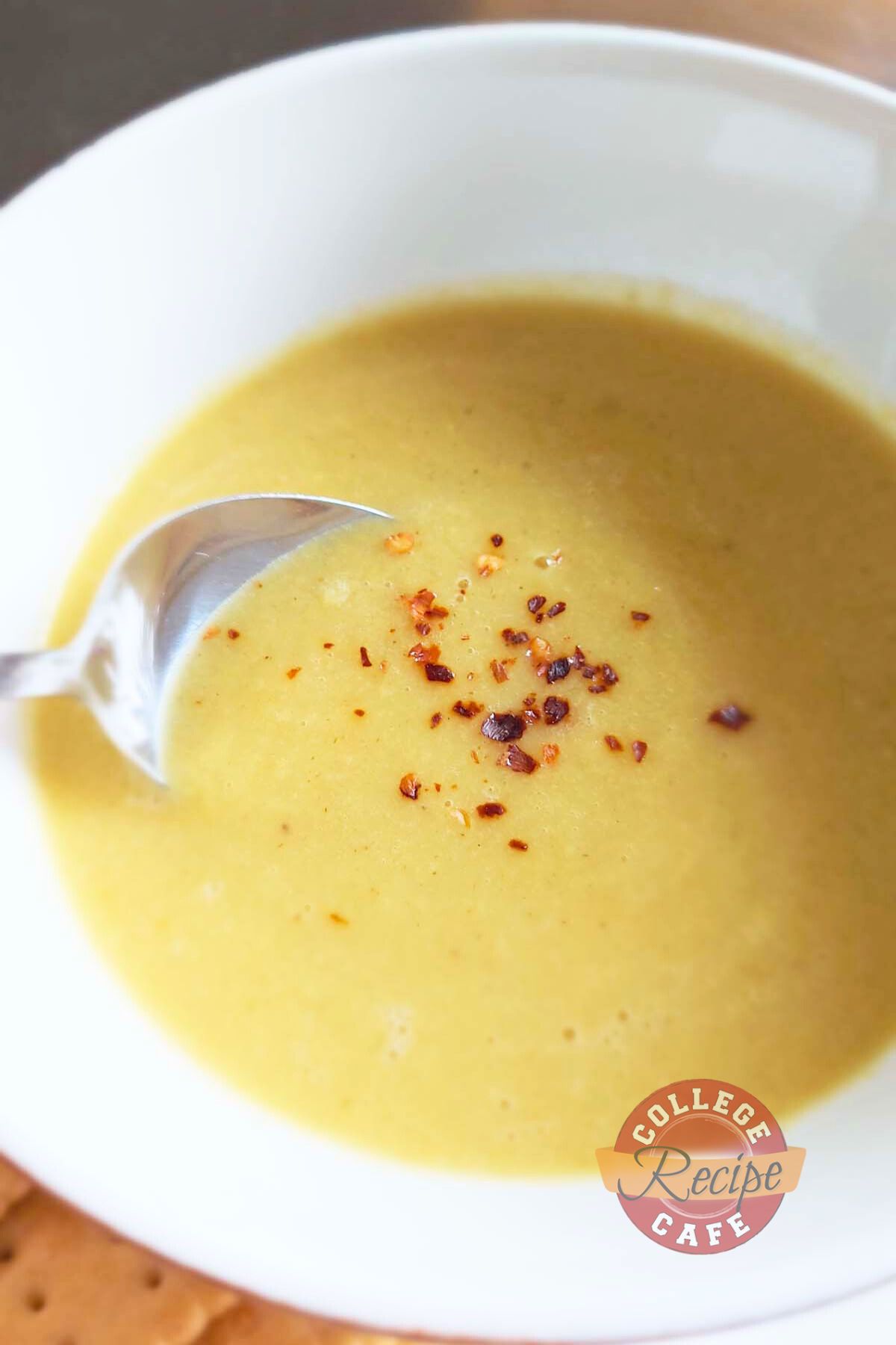 - Ladle soup into a bowl, and top with a pinch of red pepper flakes (if using).